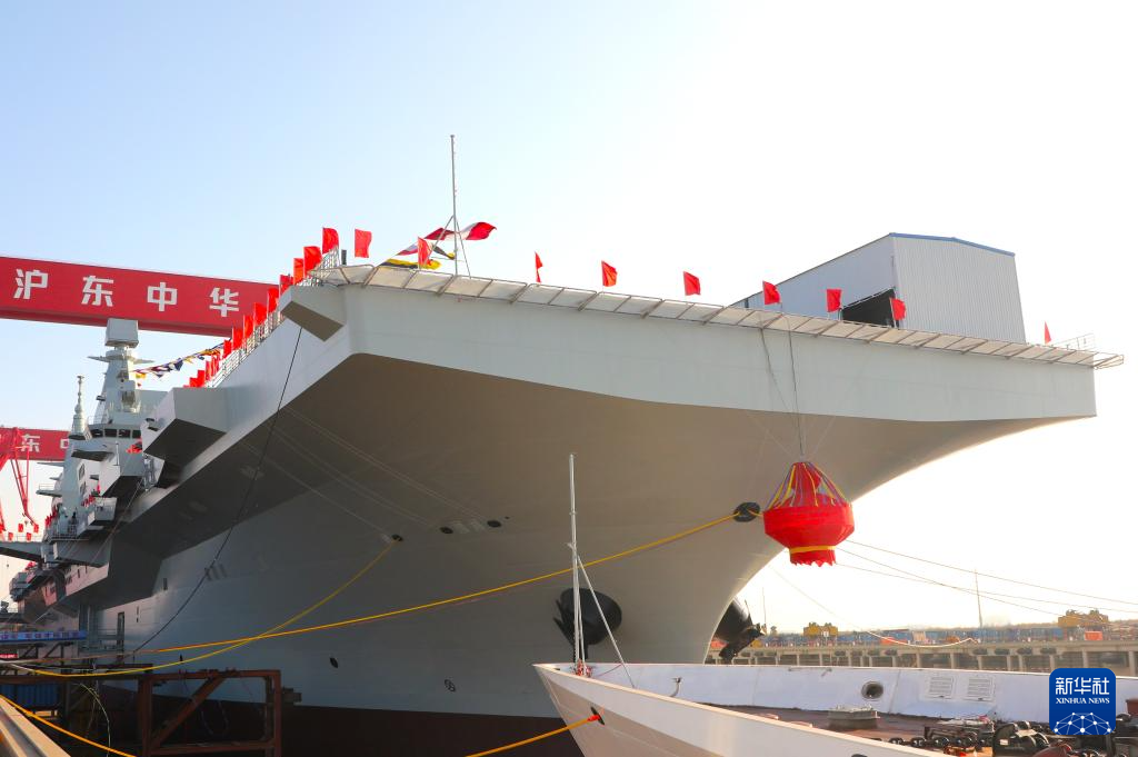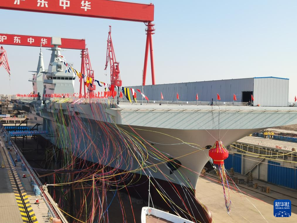 12月27日上午,我国自主研制建造的076两栖攻击舰首舰下水命名仪式在上海举行。新华社发(蒲海洋 摄)