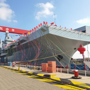经中央军委批准,076两栖攻击舰首舰命名为“中国人民解放军海军四川舰”,舷号为“51”。四川舰满载排水量4万余吨,设置双舰岛式上层建筑和全纵通飞行甲板,创新应用了电磁弹射和阻拦技术,可搭载固定翼飞机、直升机、两栖装备等,是海军新一代两栖攻击舰,是推进海军转型建设发展、提升远海作战能力的关键装备。该舰下水后,将按计划开展设备调试、系泊试验、航行试验等工作。