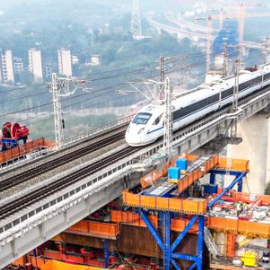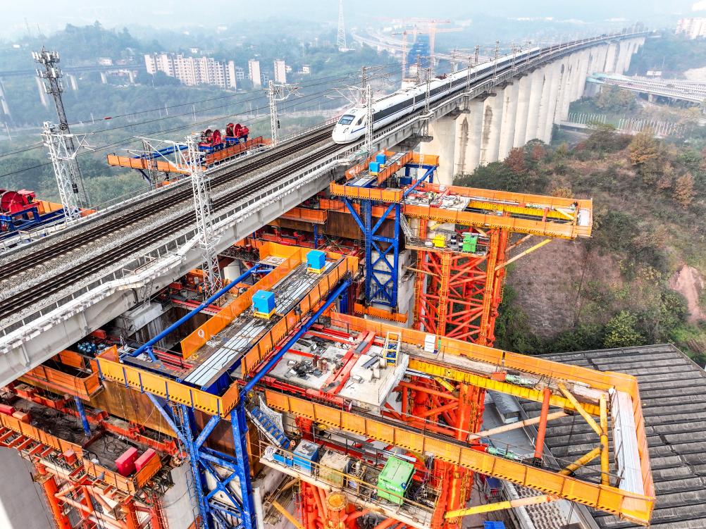 据中国铁路成都局集团公司重庆建设指挥部相关负责人介绍,中铁二院设计、中铁大桥局承建的成渝中线井口双线特大桥位于重庆市北碚区和沙坪坝区接壤处,该大桥需要从已建成投用的沪蓉线新井口嘉陵江特大桥下方穿过。