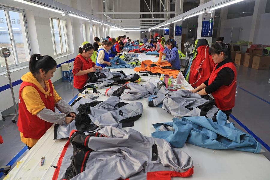 ↑2024年11月15日,在辽宁飞马特实业有限公司,工作人员在对冲锋衣进行出厂检查。近年来,辽宁省丹东市服装企业抓住冰雪经济热潮,从小众服装品牌代工做起,如今已延伸到为知名品牌代工滑雪服和冬季服装。