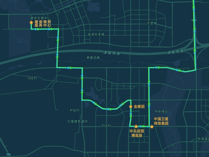 京雄通勤定制快巴线路——雄安新区端线路走向及上下客点位图。(雄安新区建设和交通管理局供图)