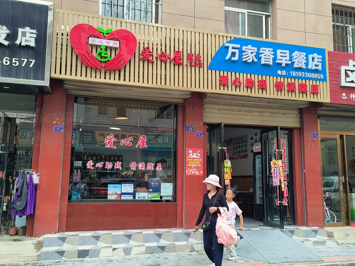 26岁的贾艳来自甘肃省平凉市崆峒区,此前,腿部残疾的她毕业后一直赋闲在家。今年5月,在当地残疾人联合会的帮助下,她入职一家挂有“爱心屋”标志的早餐店,每月能拿到1400元工资。