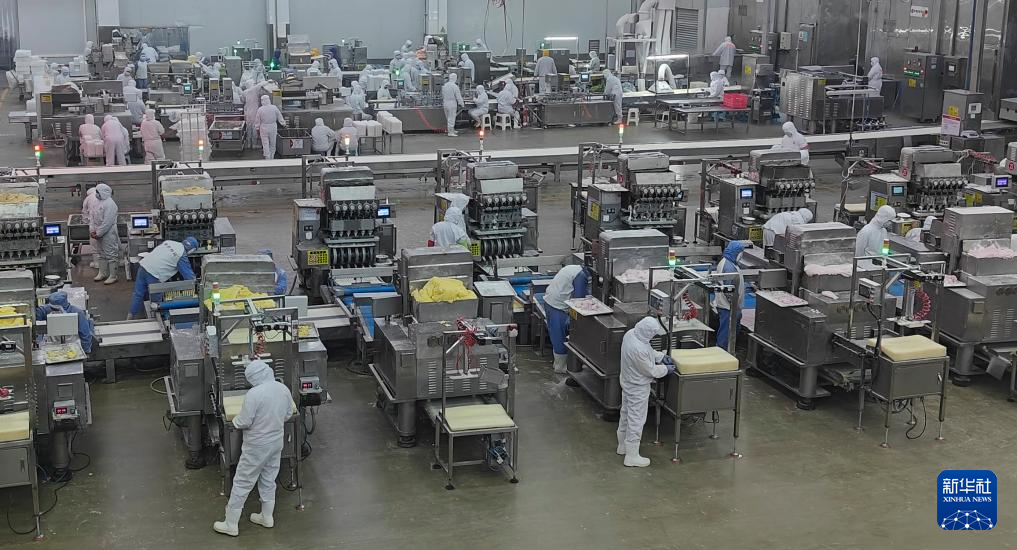 12月26日,工人在河南漯河的河南御江食品股份有限公司的生产线上工作。新华社记者 刘力航 摄