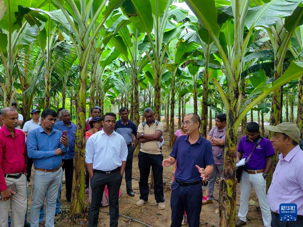 10月10日,在斯里兰卡霍勒讷的一处香蕉示范基地,中国、联合国粮农组织与斯里兰卡南南合作项目中国专家组组长孙德权为当地农民进行技术培训。新华社发(中国、联合国粮农组织与斯里兰卡南南合作项目专家组供图)