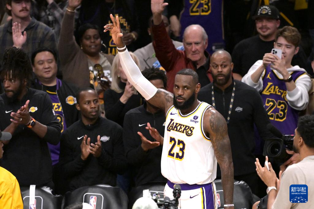 这是2024年3月2日,洛杉矶湖人队球员勒布朗·詹姆斯在对阵丹佛掘金队的比赛后向观众致意。新华社发