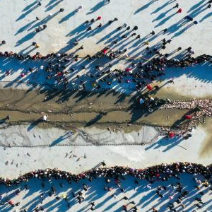 12月28日,游客在查干湖冰面上观看冬捕(无人机照片)。新华社记者 张楠 摄