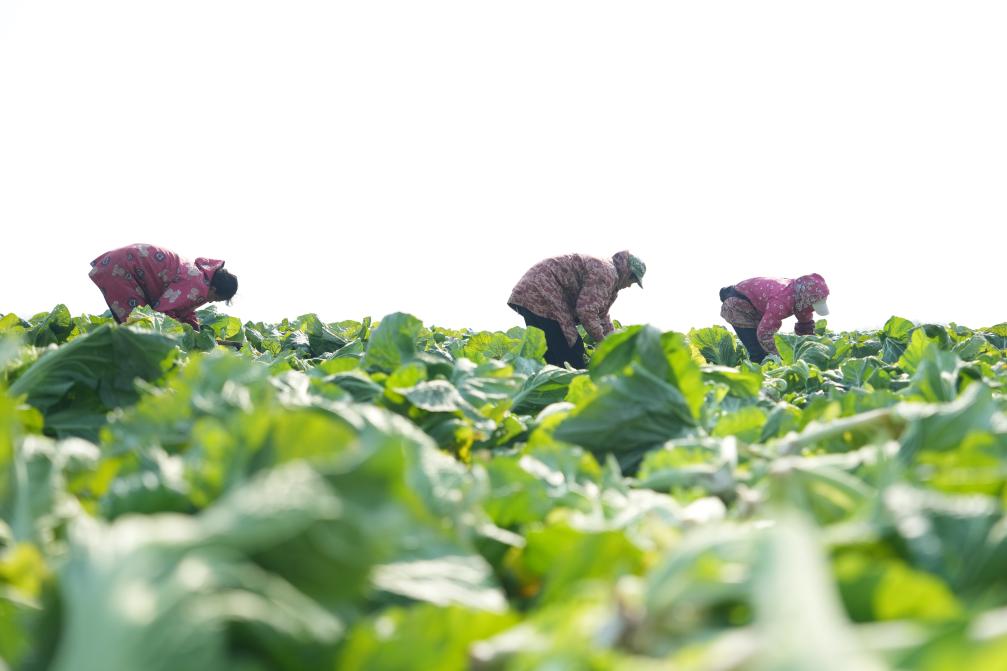 12月18日,农民在湖南省岳阳市华容县团洲垸内的团华村采收芥菜。新华社记者 薛宇舸 摄