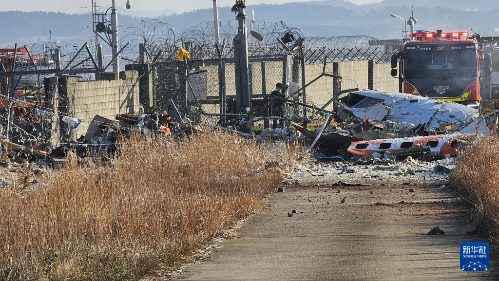 这是12月29日在韩国务安机场拍摄的事故现场。 新华社/纽西斯通讯社