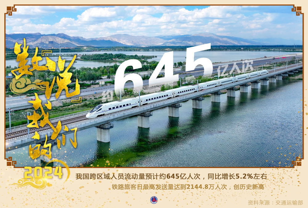 2024年我国跨区域人员流动量预计约645亿人次,同比增长5.2%左右。铁路旅客日最高发送量达到2144.8万人次,创历史新高。