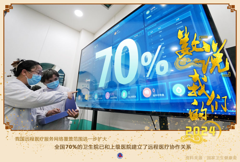 国家卫生健康委基层司有关负责人介绍,2024年我国远程医疗服务网络覆盖范围进一步扩大,目前已覆盖所有市县,并向社区和乡村基层延伸覆盖。全国70%的卫生院已和上级医院建立了远程医疗协作关系。