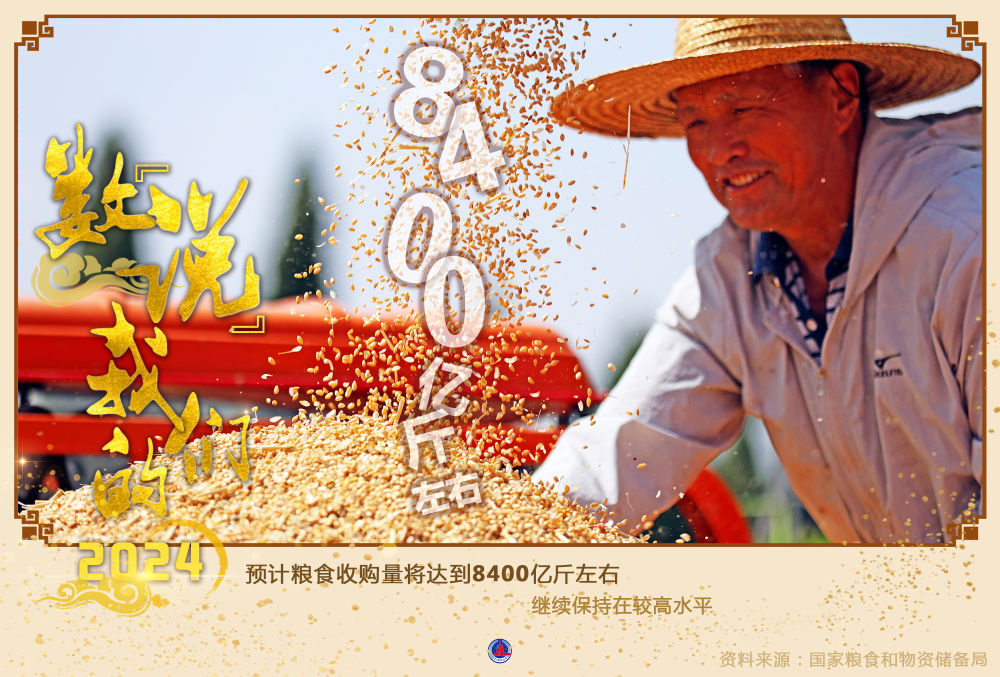 在12月26日结束的全国粮食和物资储备工作会议期间,国家粮食和物资储备局局长刘焕鑫为我们盘点了“大国粮仓”米袋子,预计2024年粮食收购量将达到8400亿斤左右,继续保持在较高水平。
