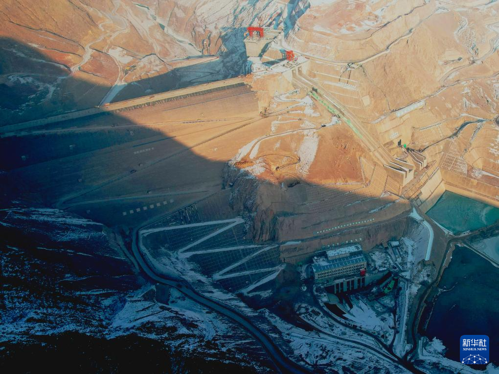 这是12月26日拍摄的新疆大石峡水利枢纽工程大坝项目现场(无人机照片)。新华社发