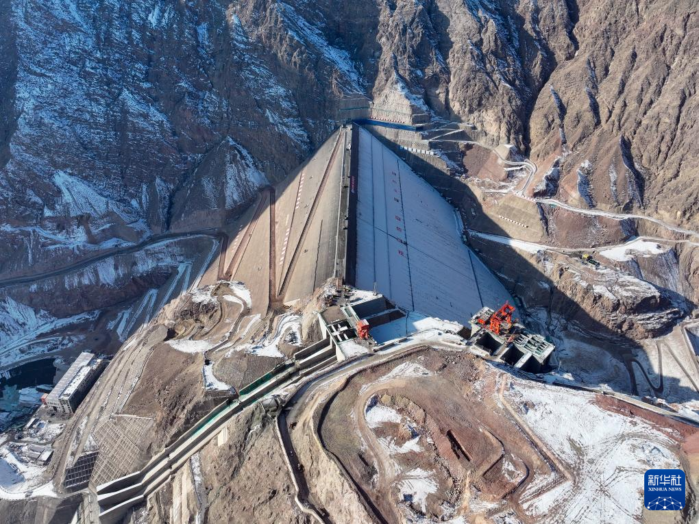 这是12月27日拍摄的新疆大石峡水利枢纽工程大坝项目现场(无人机照片)。新华社发