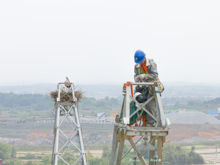鸟在高塔筑巢,是困扰整个电力行业的老大难问题。老刘和工友对鸟类在塔顶筑巢非常矛盾,如放任筑巢,不仅鸟会触电伤亡,更为重要的是,一旦造成短路,直接影响上饶、景德镇两座城市数百万人用电,如逢生产旺季,后果更是难以想象。