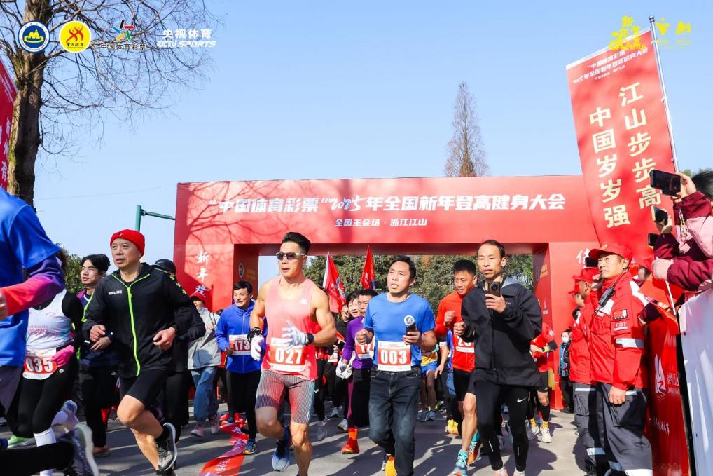 随着发令笛声响起,近万名登山爱好者在江郎山景区分时段、分批次出发,拾级而上,沿着线路登高望远、祝福新年。江郎山脚下,国家级、省级等6级体育健身展示活动火热举行,同时还配套举行特色美食、村歌非遗文化等展示;机器狗在江郎山一线天展示登高技能,彰显鲜明科技元素。