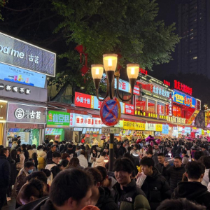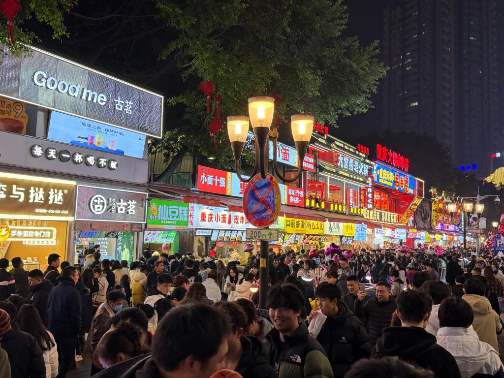 跨年夜热闹非凡的解放碑好吃街。新华社记者 李晓婷 摄