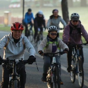 2025年1月1日,上海东方绿舟举办迎新骑行活动,人们在运动中迎接健康新一年。新华社记者 陈爱平 摄