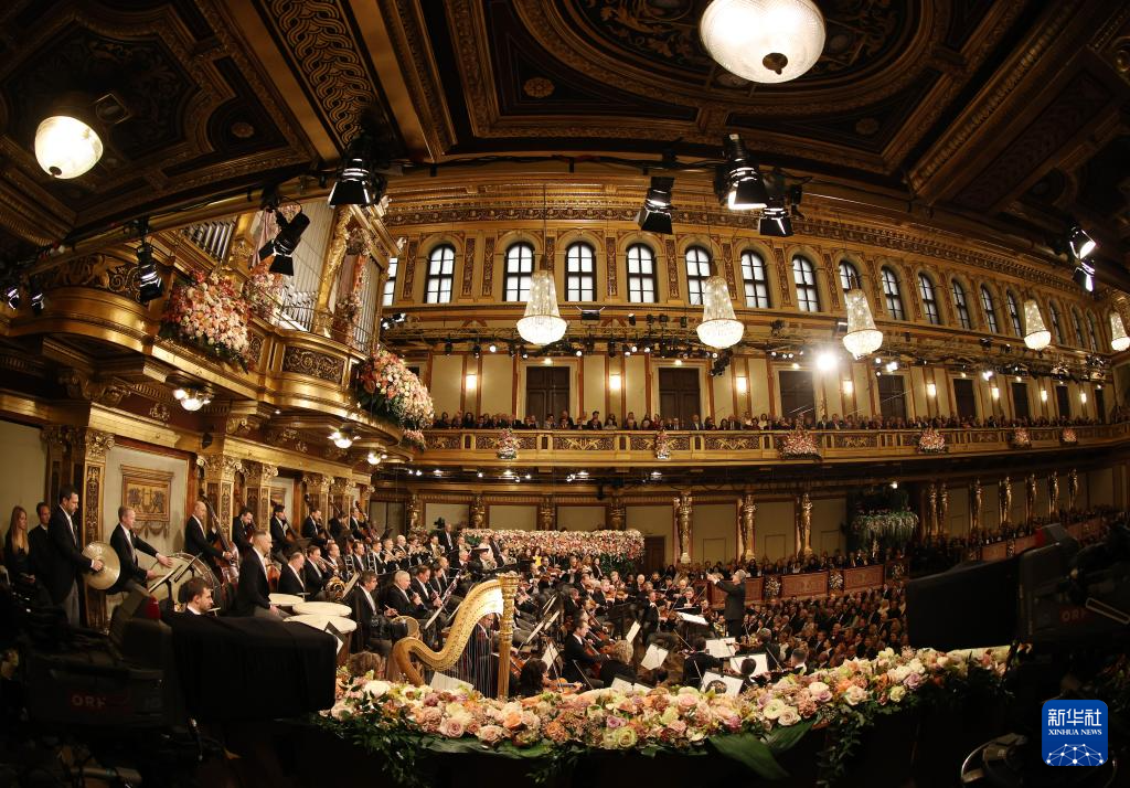 1月1日,维也纳爱乐乐团在奥地利维也纳金色大厅新年音乐会上演奏。新华社发(维也纳爱乐乐团供图,迪特·纳格摄)