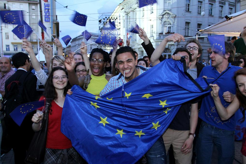 2013年6月30日,克罗地亚民众在首都萨格勒布的耶拉季奇广场庆祝加入欧盟。新华社发