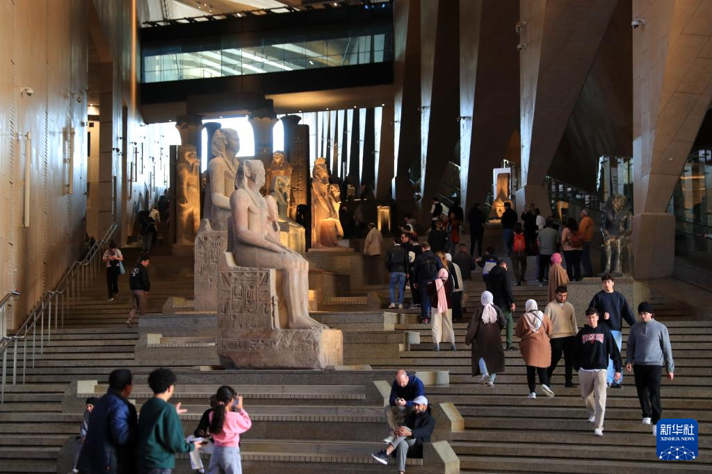 1月2日,游客在埃及吉萨参观大埃及博物馆。新华社记者 隋先凯 摄