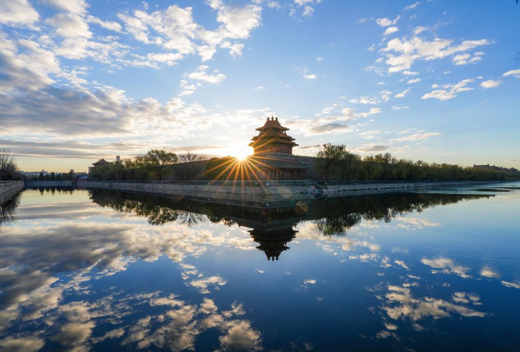 2024年11月29日清晨在北京故宫西北角楼拍摄的日出。新华社记者陈晔华 摄