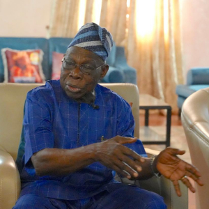 2024年11月18日,尼日利亚前总统奥卢塞贡·奥巴桑乔在尼日利亚奥贡州阿贝奥库塔接受新华社记者专访。新华社记者 侯鸣 摄