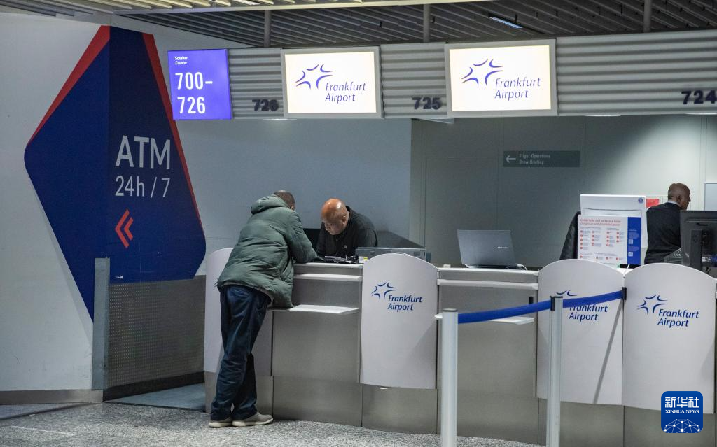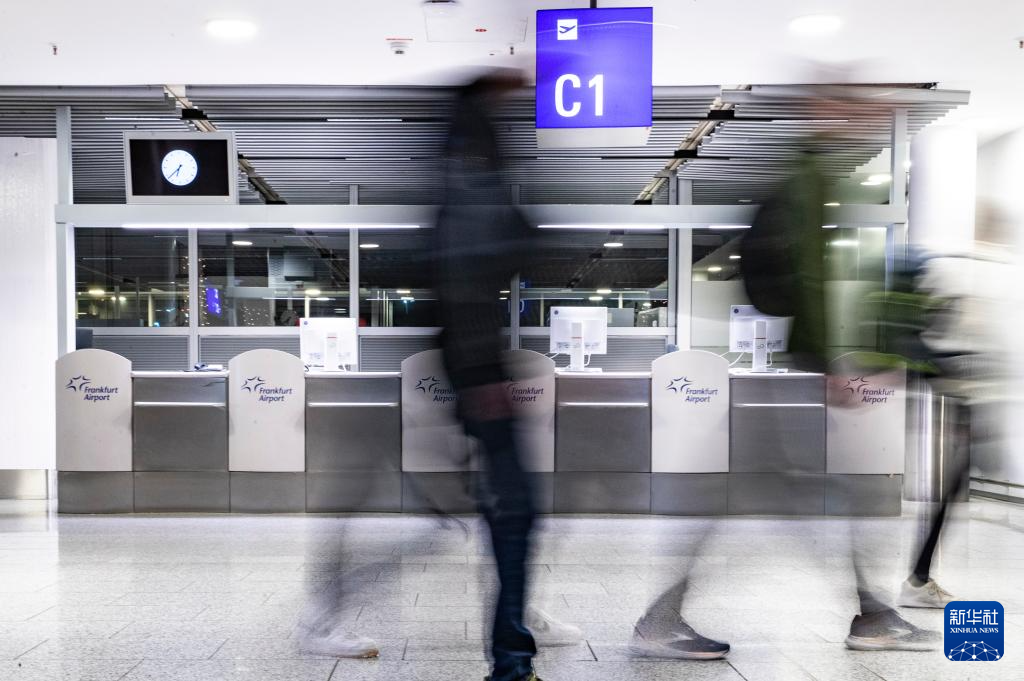 1月3日,人们从德国法兰克福机场的服务柜台前走过。新华社记者 张帆 摄