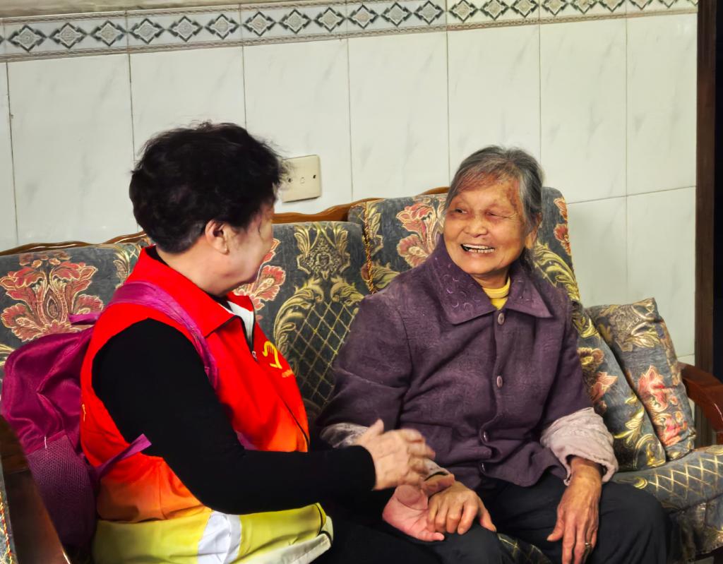 归侨黄玉云家中,离退休干部党支部成员正入户走访。黄玉云今年已86岁,孩子都在外地工作,前几年丈夫去世后,她便独自生活,虽然身体硬朗、吃穿不愁,但仍不免感到孤独。“我们常来独居老人家中坐坐,嘘寒问暖、聊家常。他们很高兴。”党支部成员江秀春说。