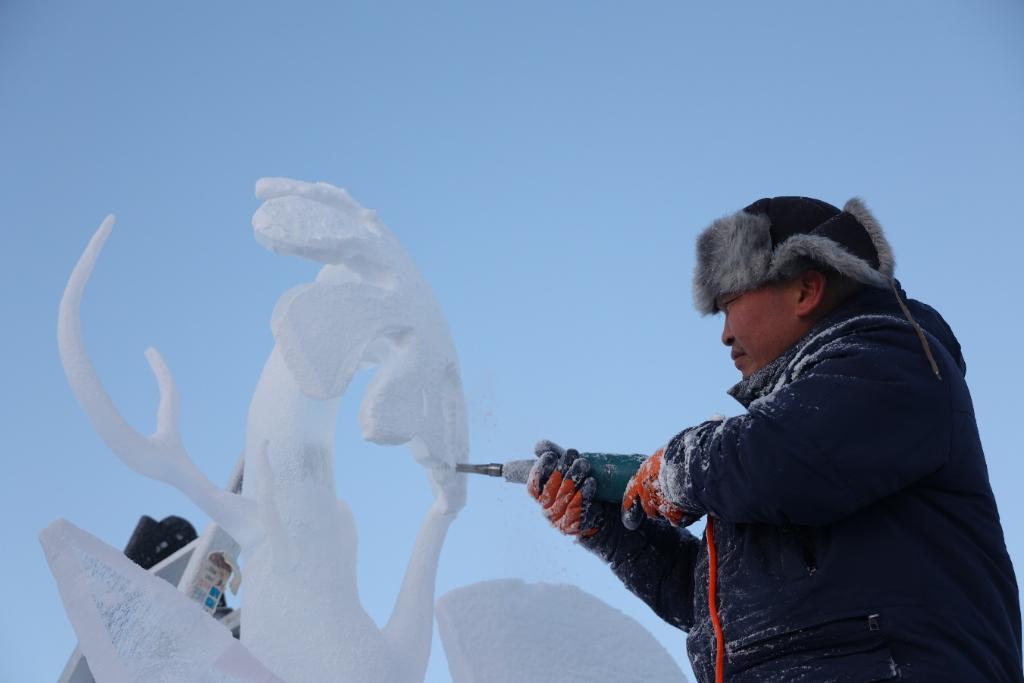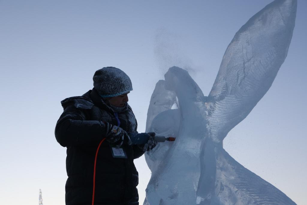 园区精选高2米、宽2米、厚0.5米的天然冰体,为参赛选手们提供施展技艺、发挥想象的舞台。