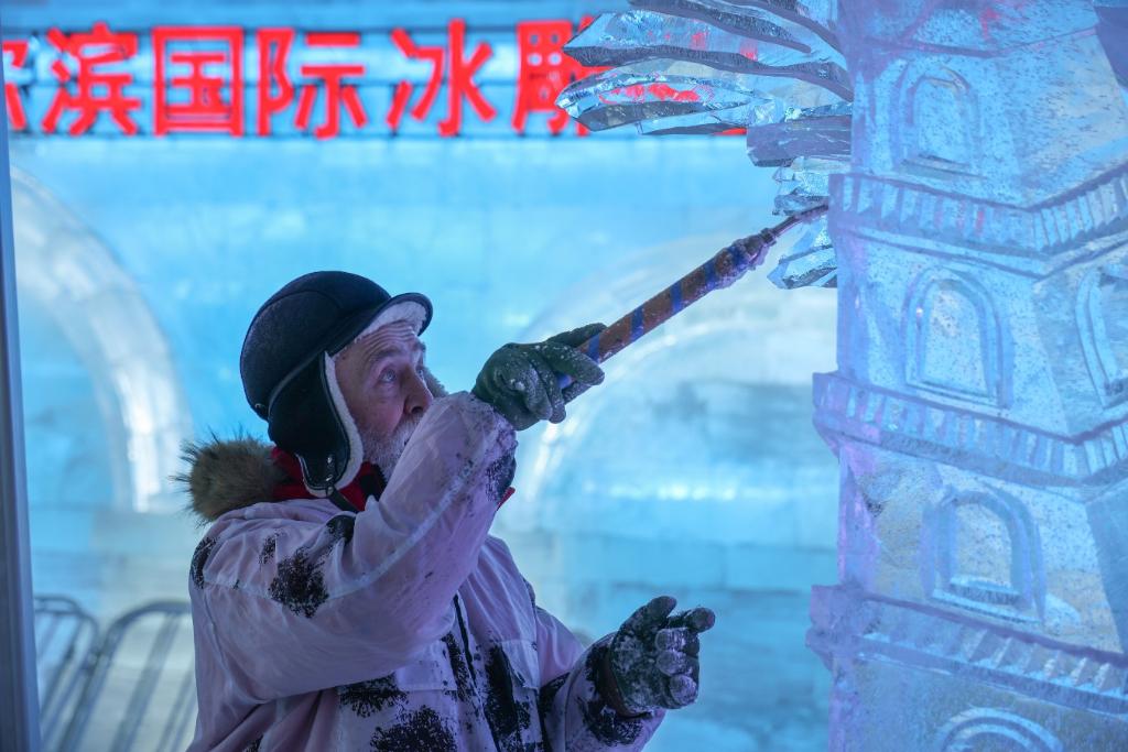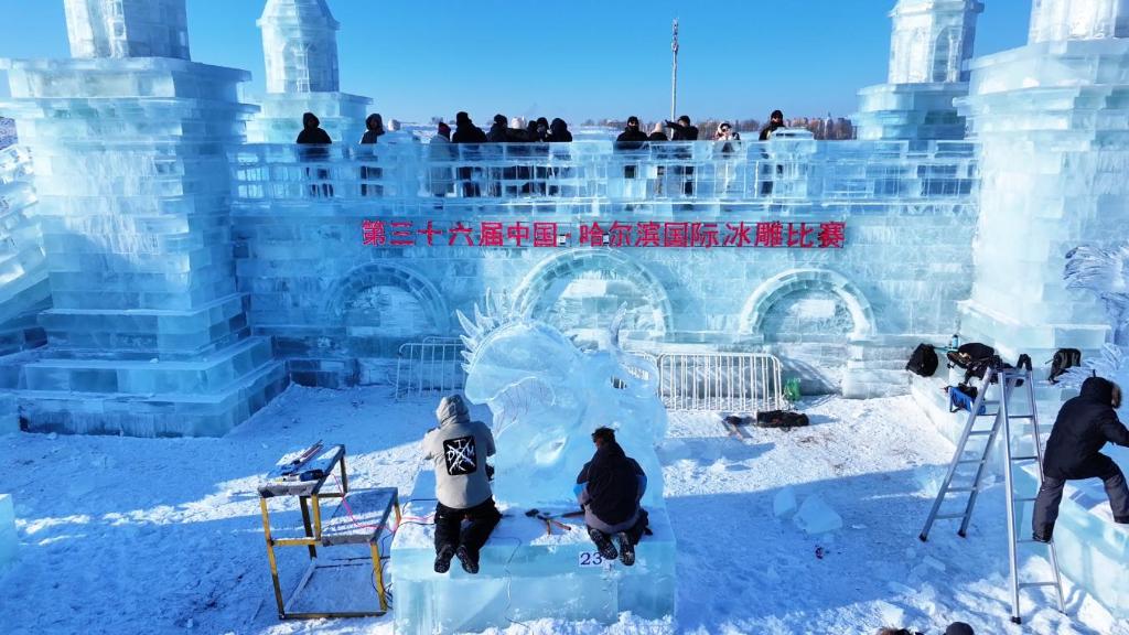 来自12个国家的30支国际冰雕队不畏严寒,怀揣着对冰雪艺术的热忱匠心创作。