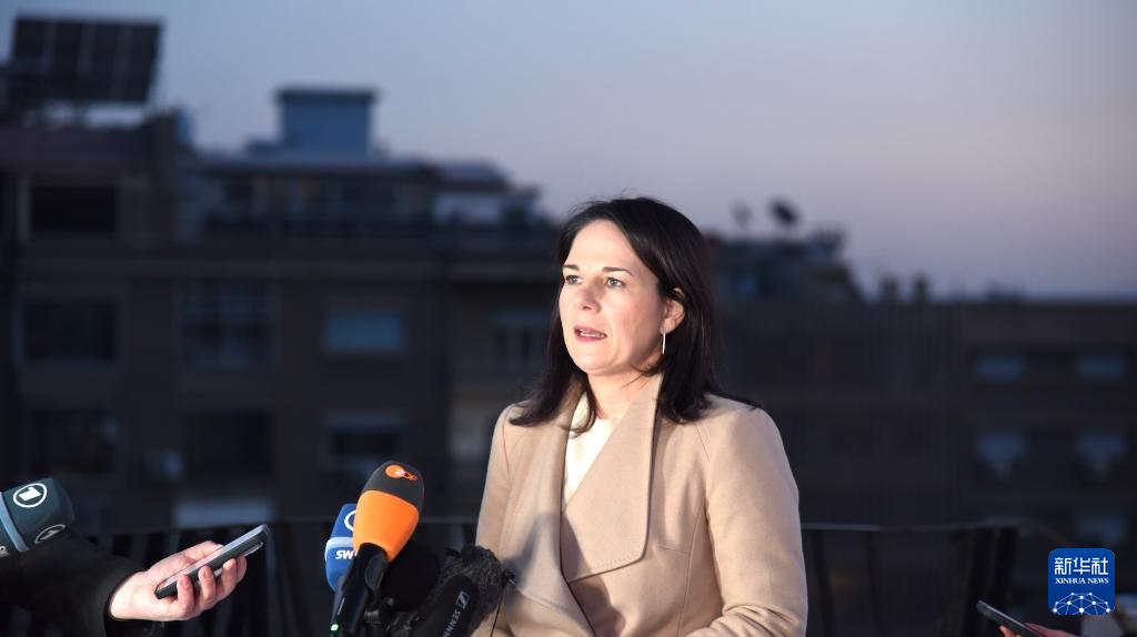 1月3日,在叙利亚大马士革,德国外长贝尔伯克接受媒体采访。新华社发(蒙塞夫·梅马里摄)