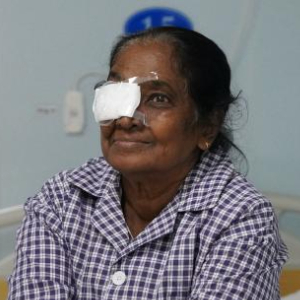 这是2024年12月24日在斯里兰卡科伦坡港停靠的中国海军“和平方舟”号医院船上拍摄的刚进行完白内障手术的本地患者。(新华社记者伍岳摄)
