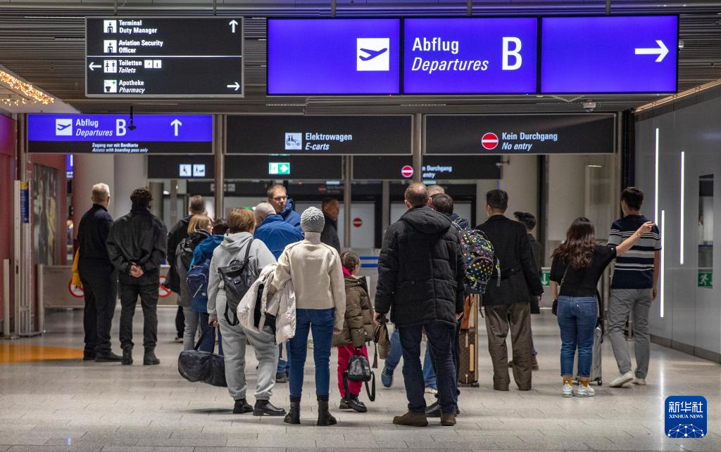 1月3日,人们聚集在德国法兰克福机场出发大厅。新华社记者 张帆 摄