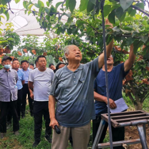 威县贺营镇袁家庄村是曲宪忠开展梨产业规模化种植的第一个试点村。“曲老师每天早晨准时出现在田间地头,手把手教梨农剪枝、疏果、除虫,大家对他的技术和作风心服口服。”袁家庄村党支部原书记郑继奎回忆。