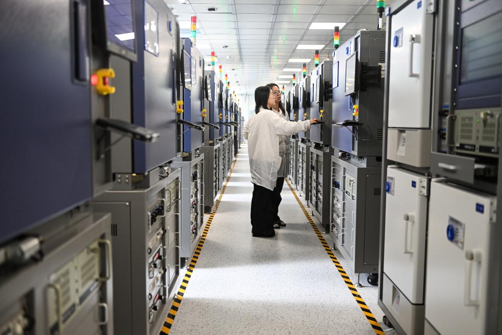 苏州东微半导体股份有限公司实验室,工作人员在检查数据。新华社记者季春鹏 摄