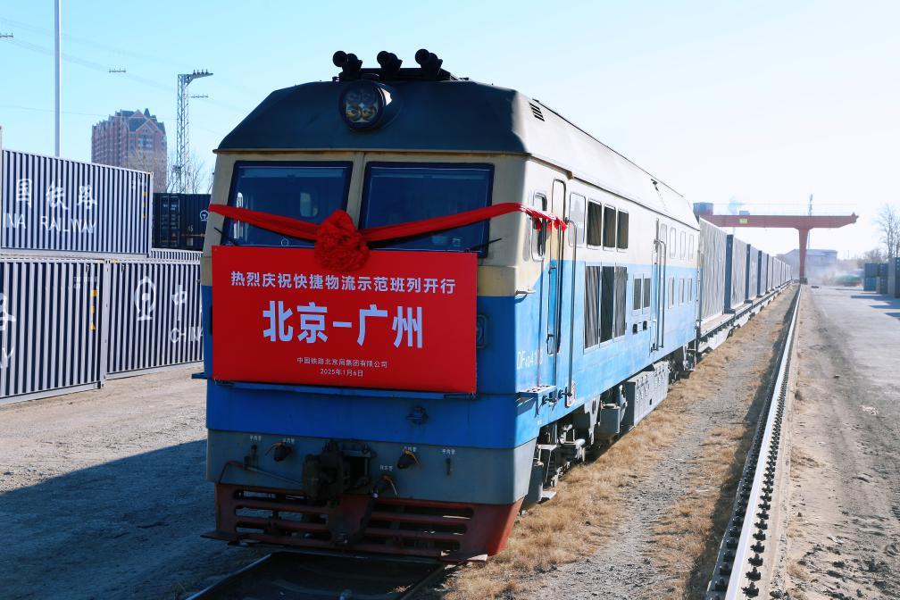 图为从北京丰台西站开出的铁路快捷物流示范班列。(国铁集团供图)