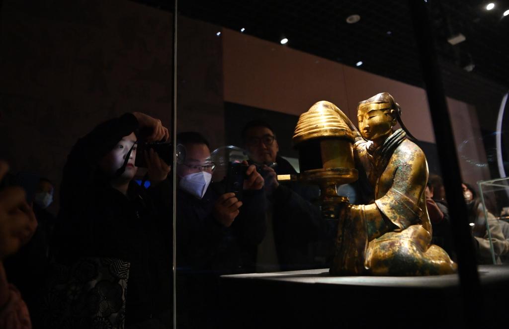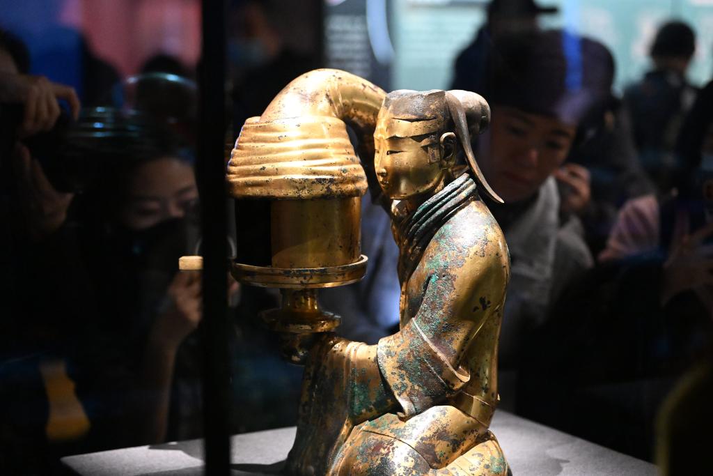 近日,在天津博物馆举行的“天开一统——秦汉文物主题展”上,包括长信宫灯在内的近400件(套)秦汉文物集中亮相,吸引观众前来参观。