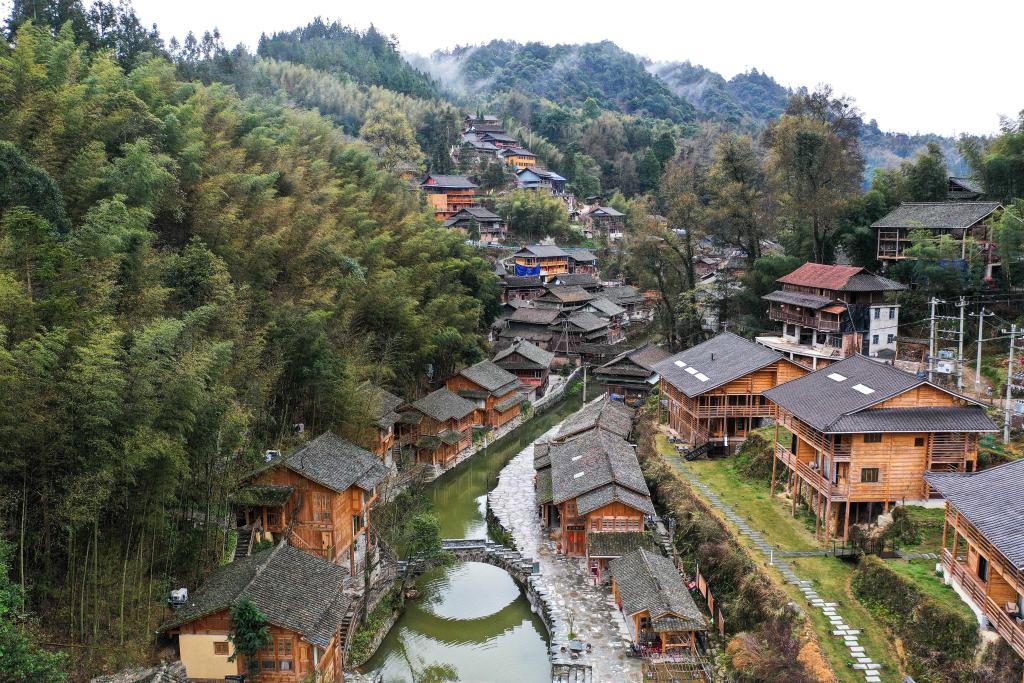 这是2024年3月18日拍摄的贵州省榕江县栽麻镇大利侗寨民宿(无人机照片)。新华社记者 杨文斌 摄