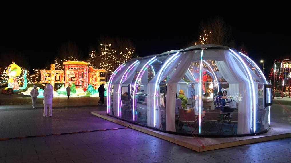 这是设置在科尔沁右翼前旗锦绣灯会嘉年华的一处泡泡屋,方便游客歇脚取暖。新华社记者 恩浩 摄