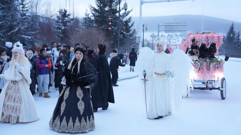 阿尔山街头的“冰雪童梦”巡游。新华社记者 恩浩 摄