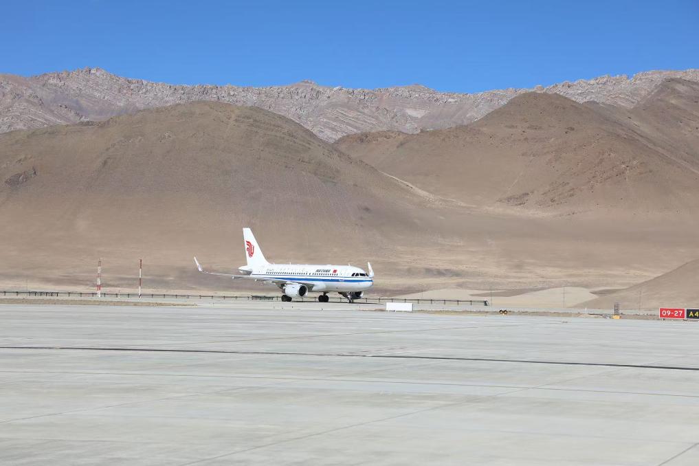 国航CA4431航班安全降落在日喀则定日机场。(民航西藏自治区管理局供图)
