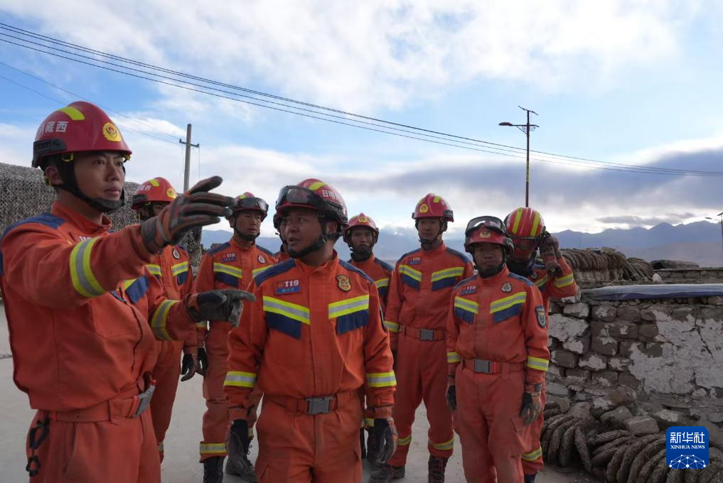 1月7日,救援人员在定日县长所乡古荣村展开救援。新华社记者 晋美多吉 摄