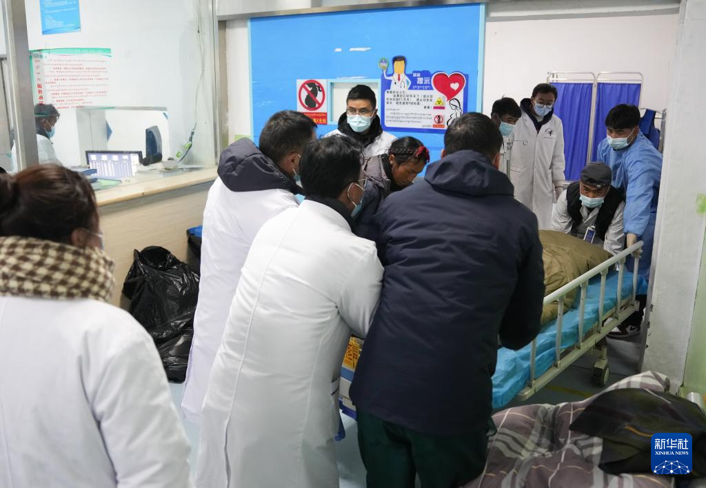 1月7日,在定日县人民医院,医护人员全力救治因地震受伤人员。新华社记者 丁汀 摄