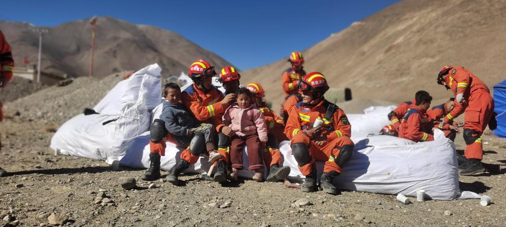 “从昨天开始,我们就在这里搭帐篷、搬物资,孩子们都认识我们了。”西藏消防救援总队拉萨市消防救援支队特勤大队三站副站长、指挥员扎西曲培说,“昨天刚刚经历地震,许多群众有些不安。天亮之后,大家的情绪好起来了。”