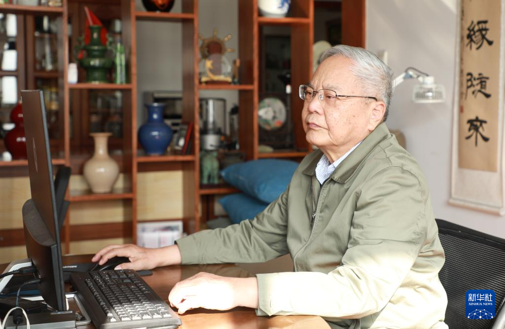 山东省军区青岛第二离职干部休养所退休干部、原海军潜艇学院教授胡均川在电脑前阅读文献资料(1月3日摄)。新华社记者 李秉宣 摄