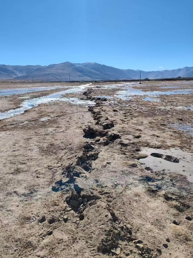 中国地震局地质研究所、四川省地震局联合调查团队1月9日在西藏日喀则定日县长所乡杂村南发现定日地震同震地表变形带,同震形变带延伸超过10千米。