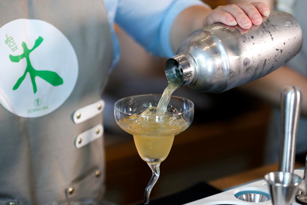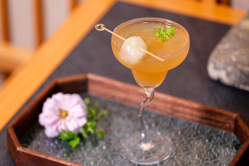 这是2024年5月23日在黄山市屯溪区德茗舍茶艺职业培训学校拍摄的新中式调饮——啖红尘。