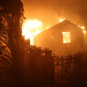 1月7日,在美国加利福尼亚州南部洛杉矶县沿海社区帕西菲克帕利塞兹,野火吞噬房屋。新华社发(邱晨摄)
