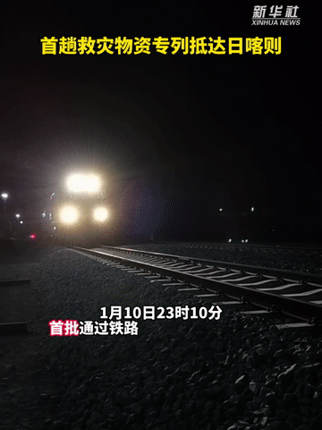 1月10日23时10分,首批通过铁路运输的抗震救灾物资搭载95001次专列顺利抵达西藏自治区日喀则西站。