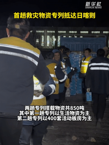 该批物资将在日喀则西站快速转由公路运输,第一时间运抵定日县、帮助灾区群众渡过难关。